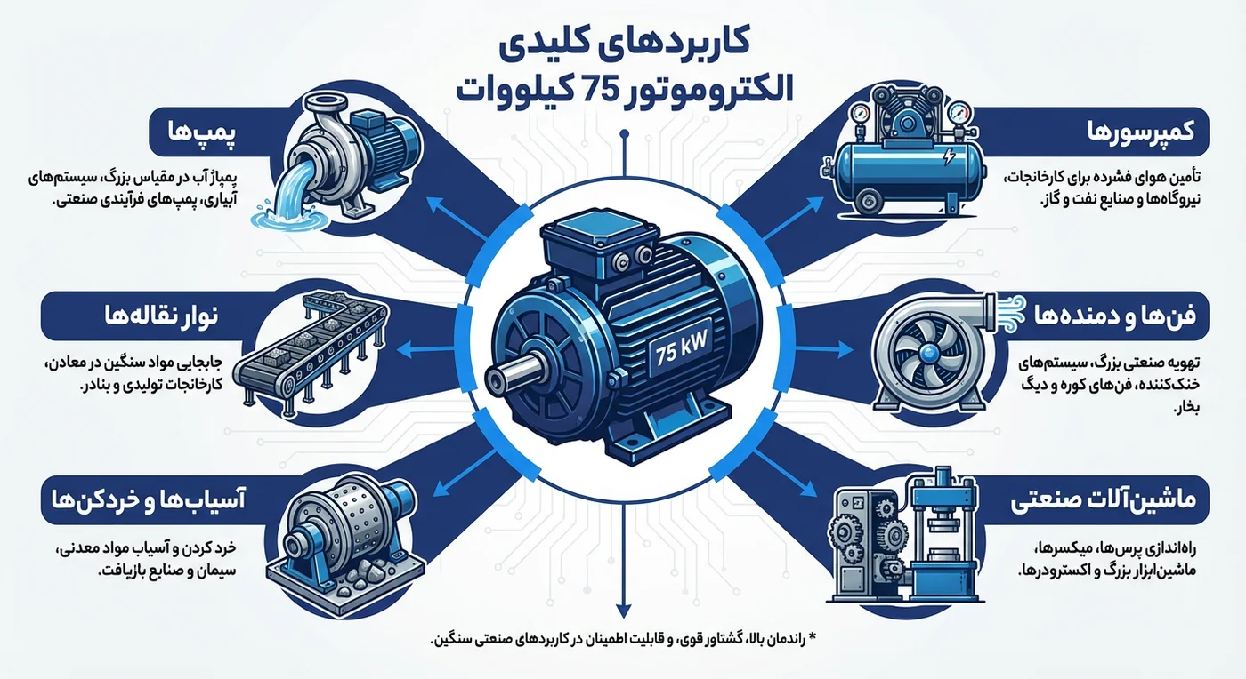 In the country’s industrial environments, where energy savings and operational stability are two main priorities, the uninterrupted performance of a high-quality 75-kilowatt electric motor directly impacts productivity and reduces electricity costs. Domestic manufacturers such as JAMCO, by offering products compliant with international standards (such as IEC), not only reliably meet domestic market needs but also, by focusing on high efficiency, enable optimization of maintenance costs and energy consumption.