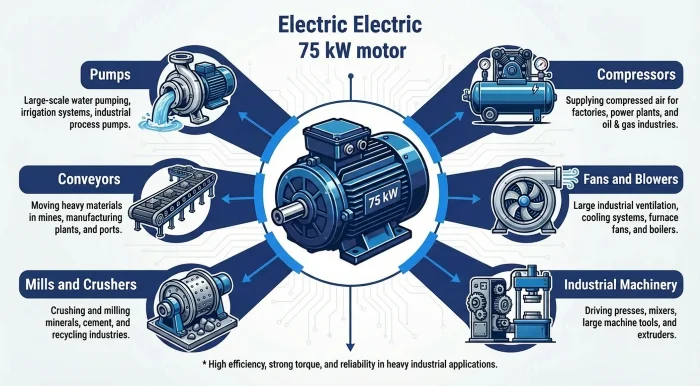 In these industries, the 75-kilowatt motor is often used to drive heavy fluid transfer pumps, large tank mixers, or process compressors.
